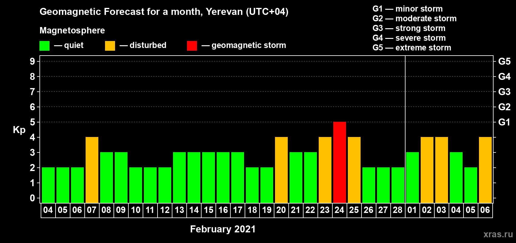 Geomagnetic storm forecast in Yerevan for Feb 04, 2021