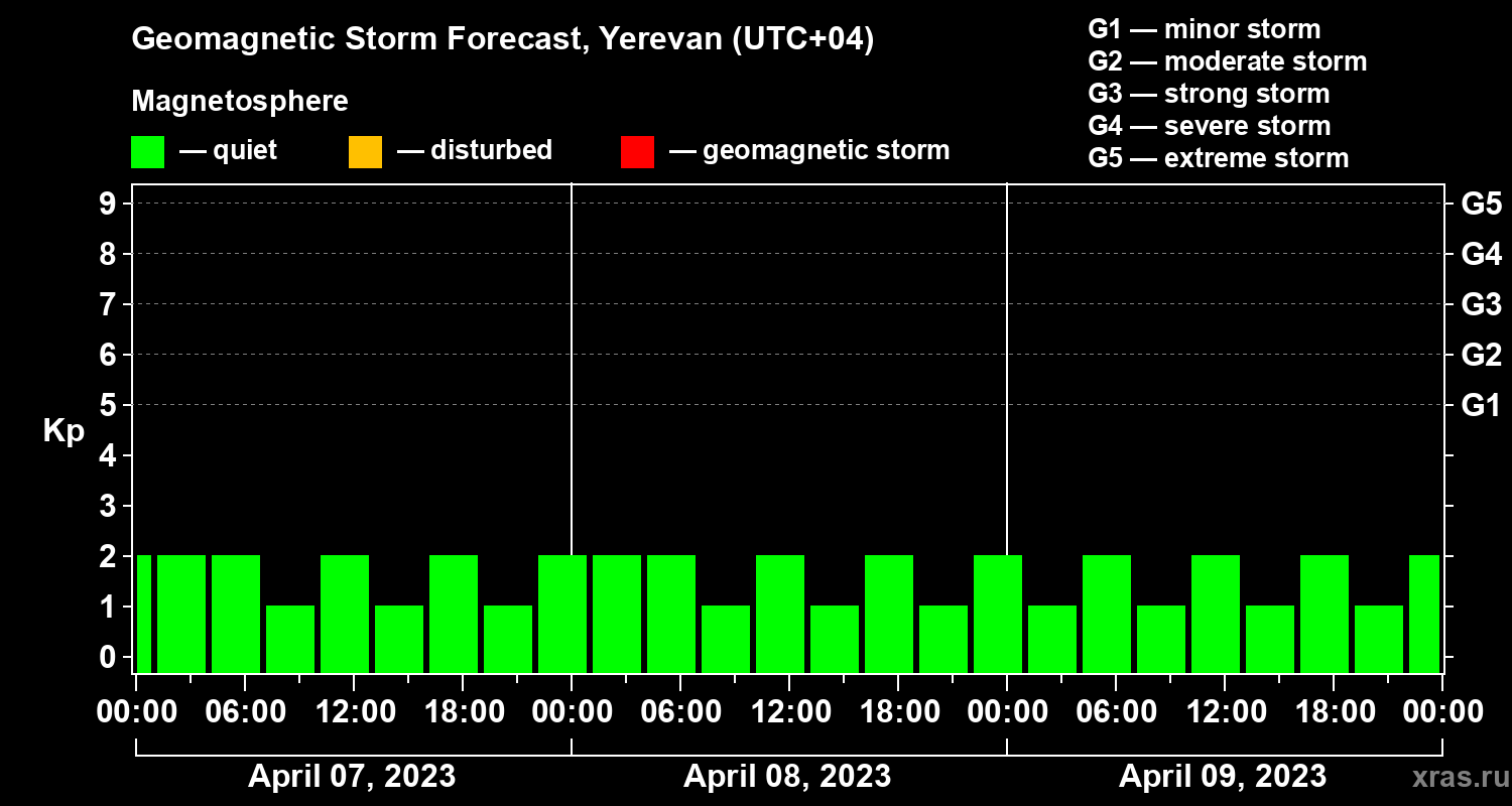 Geomagnetic storm forecast in Yerevan for Apr 07, 2023