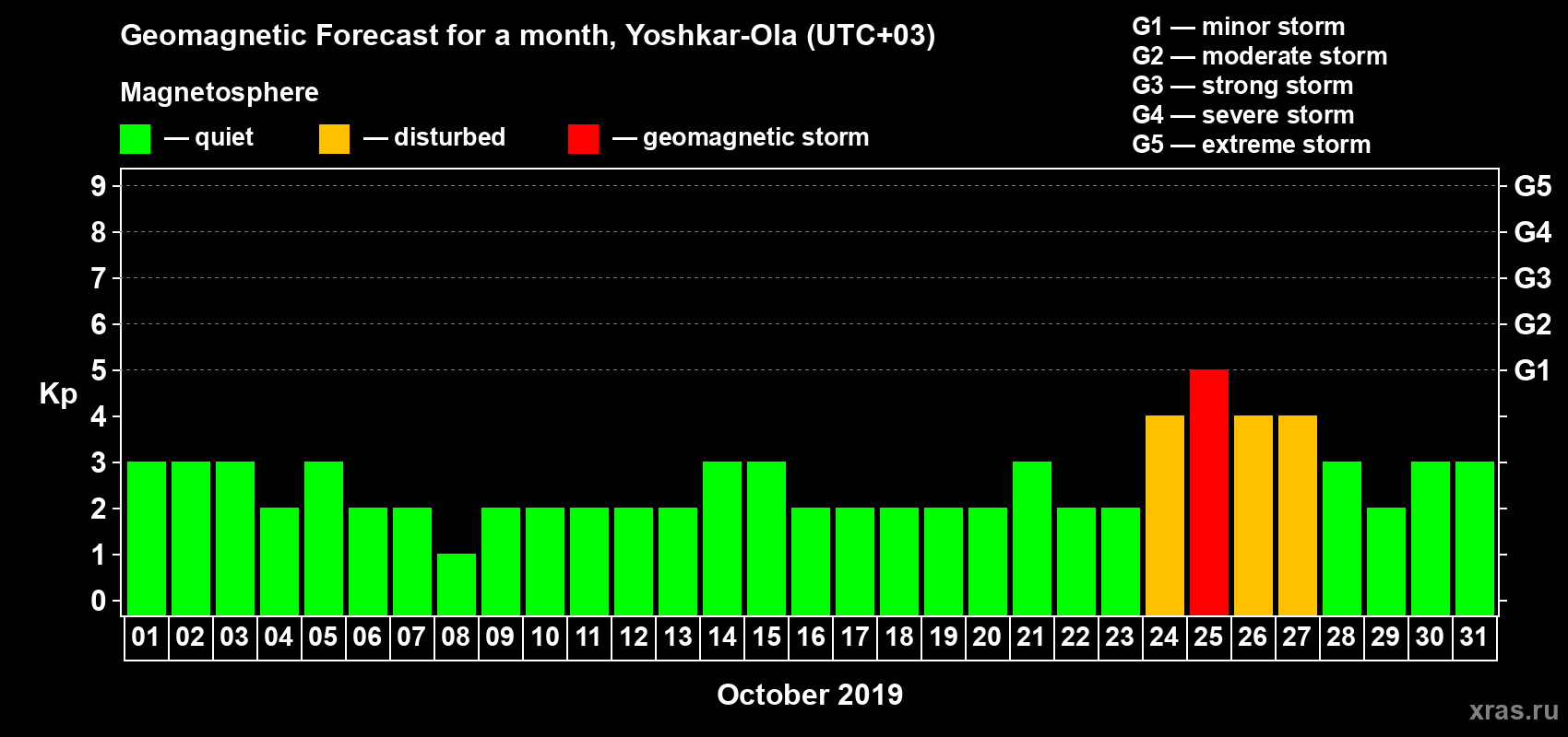 Geomagnetic storm forecast in Yoshkar-Ola for Oct 01, 2019