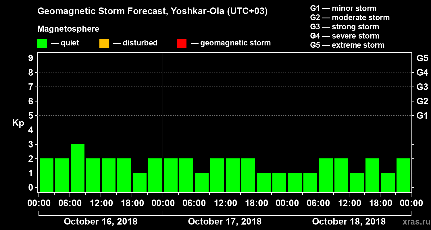 Geomagnetic activity forecast in Yoshkar-Ola — Oct 16, 2018