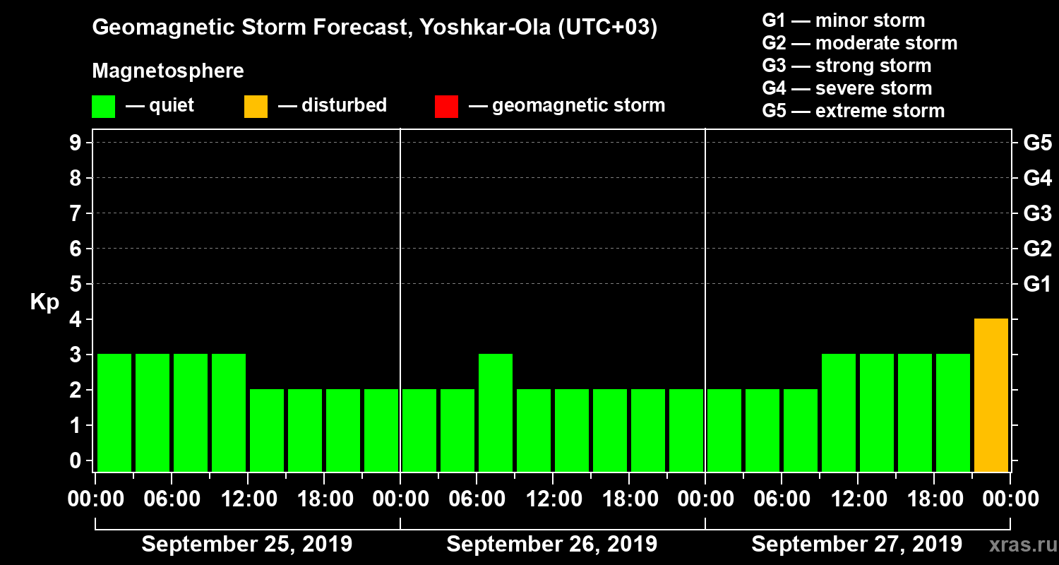 Geomagnetic activity forecast in Yoshkar-Ola — Sep 25, 2019