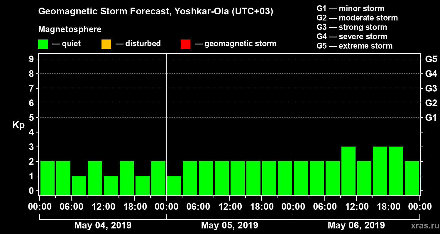 Geomagnetic activity forecast in Yoshkar-Ola — May 04, 2019