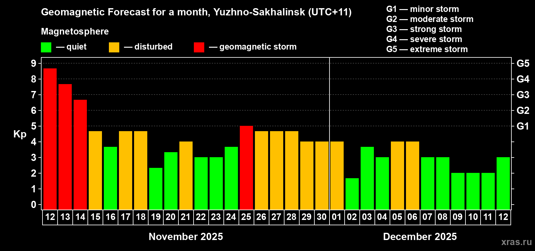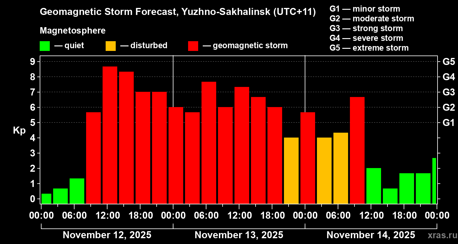 Geomagnetic storm forecast in Yuzhno-Sakhalinsk for Nov 12, 2025