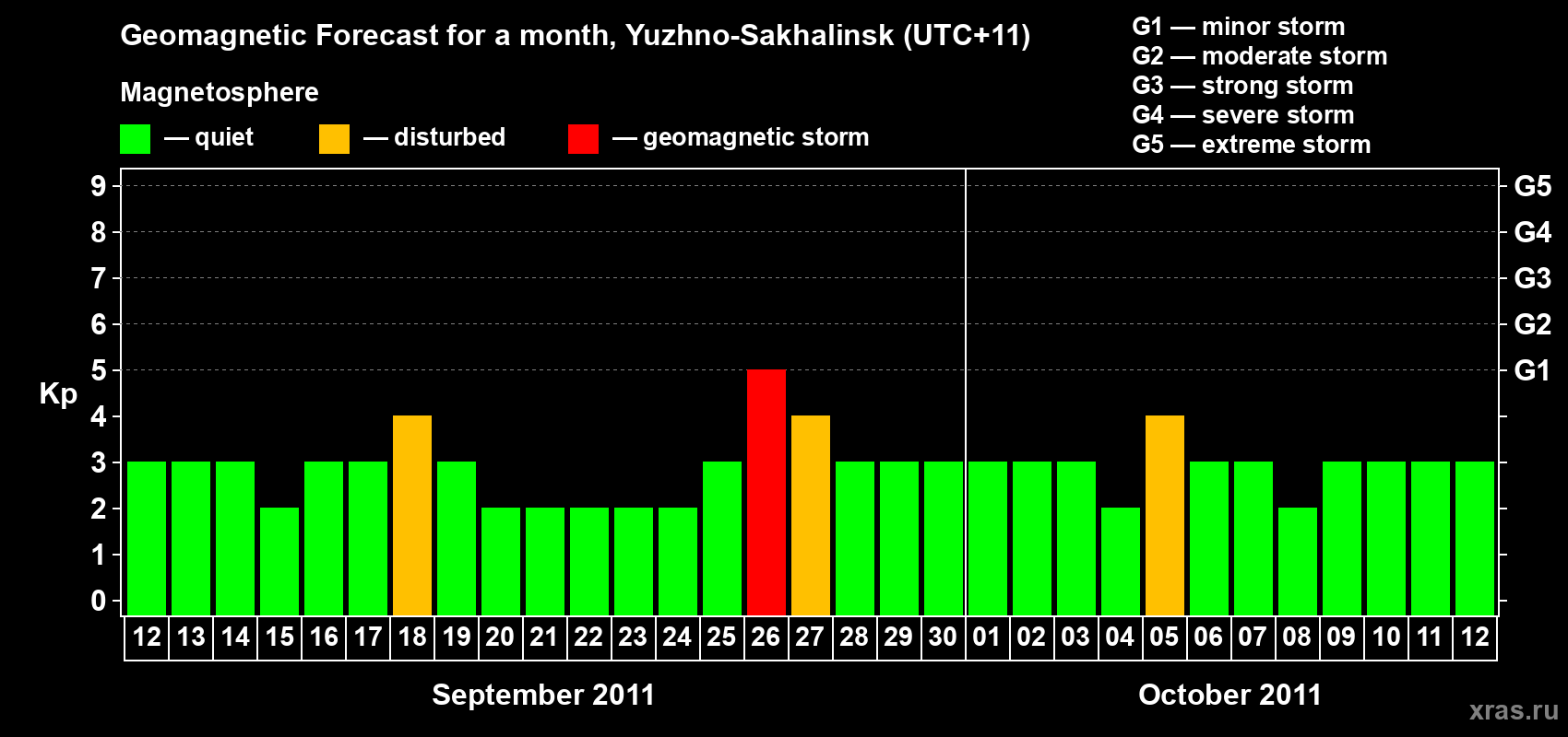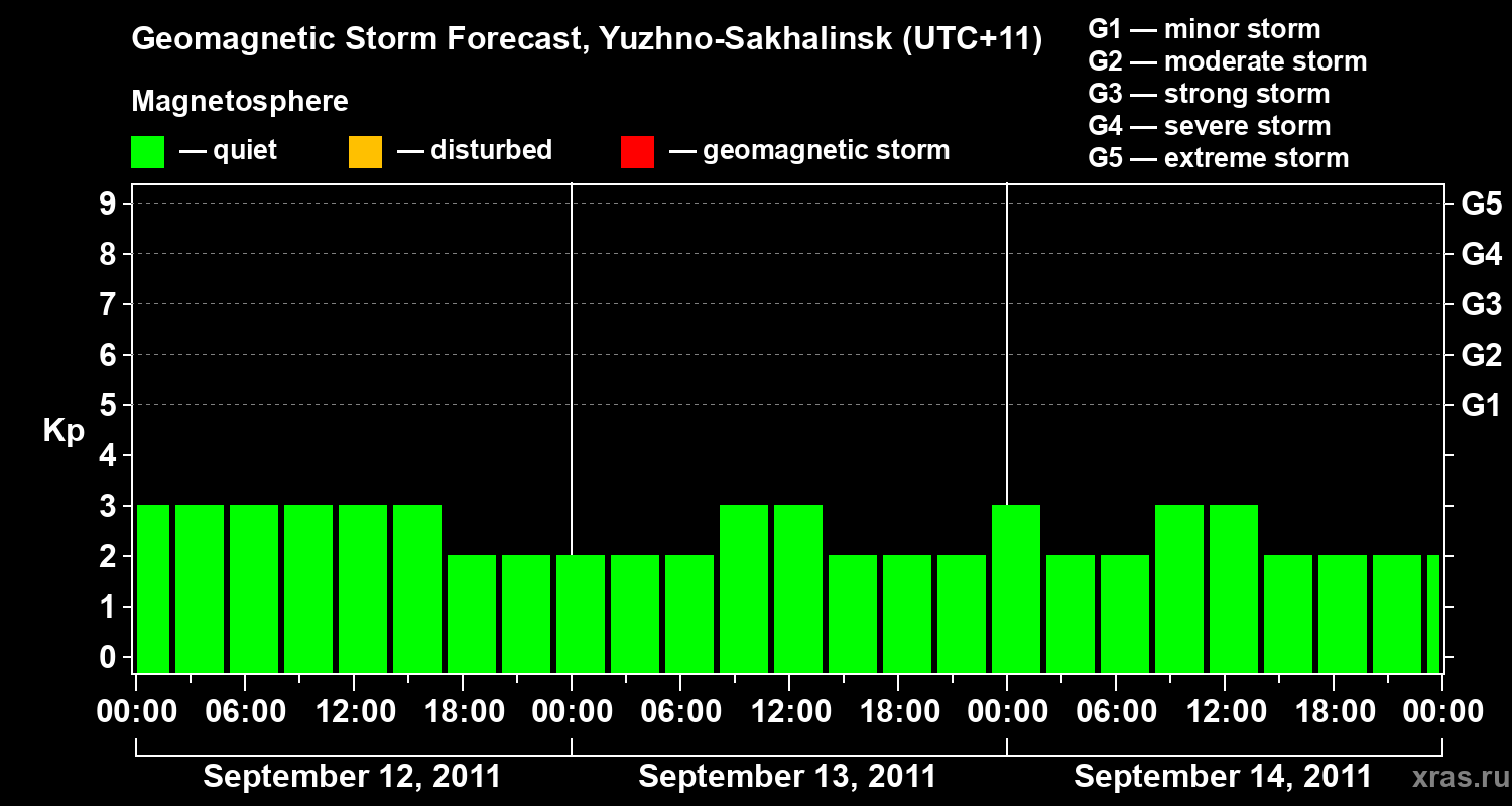 Geomagnetic storm forecast in Yuzhno-Sakhalinsk for Sep 12, 2011