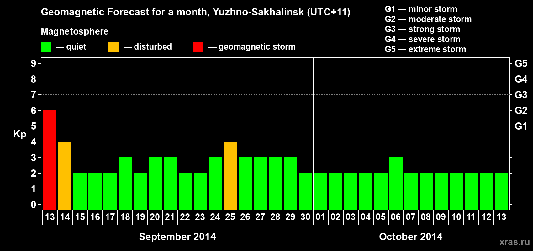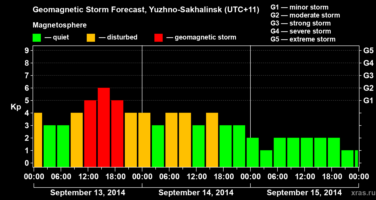 Geomagnetic storm forecast in Yuzhno-Sakhalinsk for Sep 13, 2014