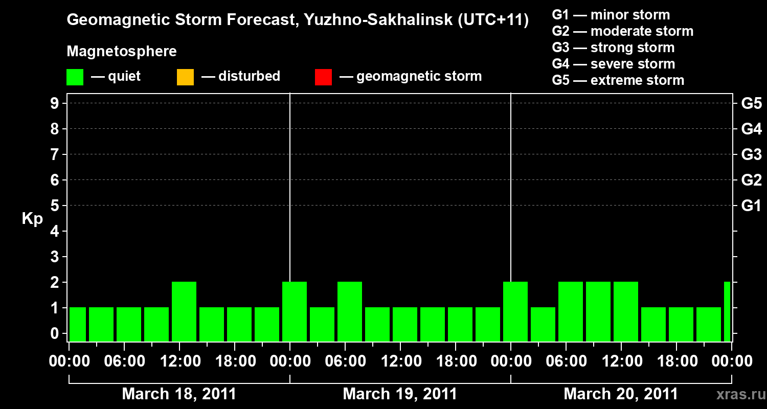 Geomagnetic storm forecast in Yuzhno-Sakhalinsk for Mar 18, 2011