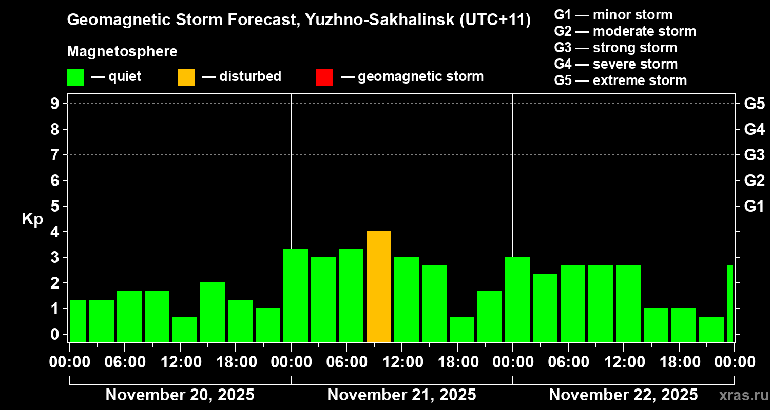 Geomagnetic storm forecast in Yuzhno-Sakhalinsk for Nov 20, 2025