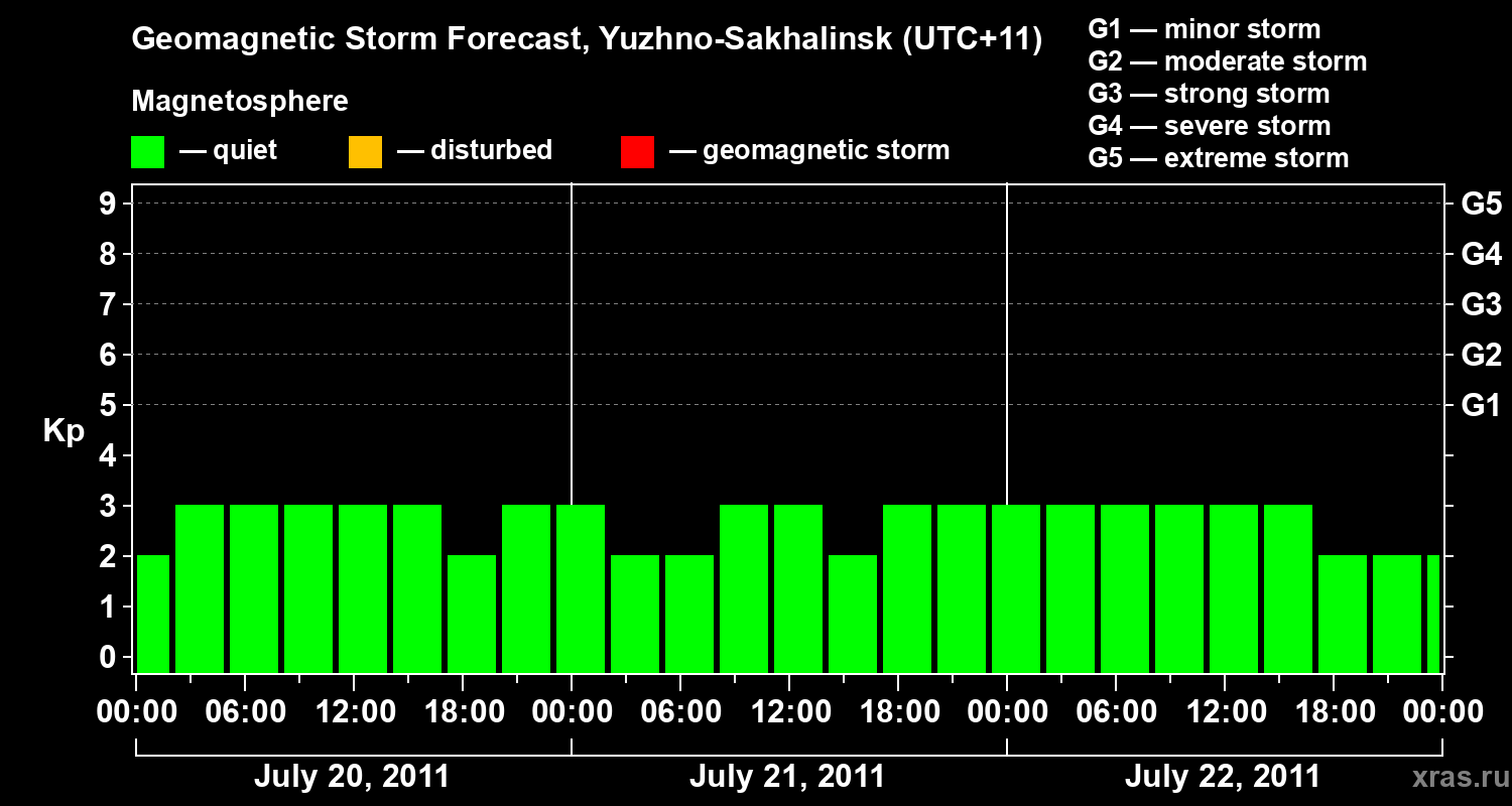 Geomagnetic storm forecast in Yuzhno-Sakhalinsk for Jul 20, 2011