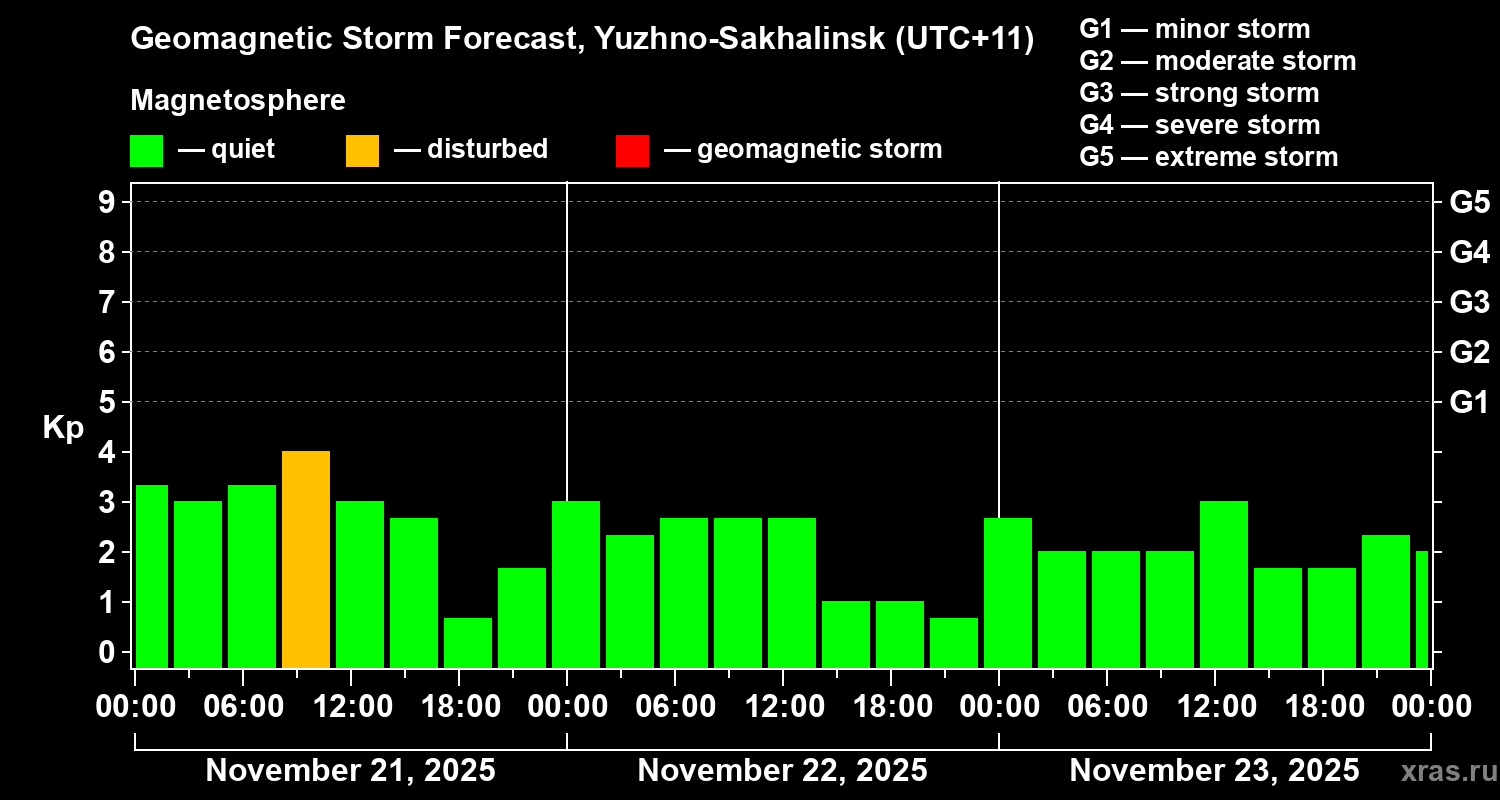 Geomagnetic storm forecast in Yuzhno-Sakhalinsk for Nov 21, 2025