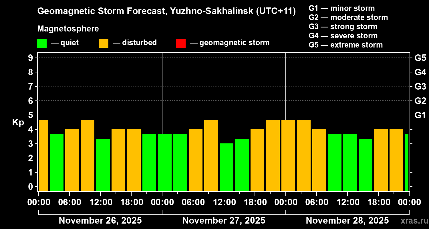 Geomagnetic storm forecast in Yuzhno-Sakhalinsk for Nov 26, 2025