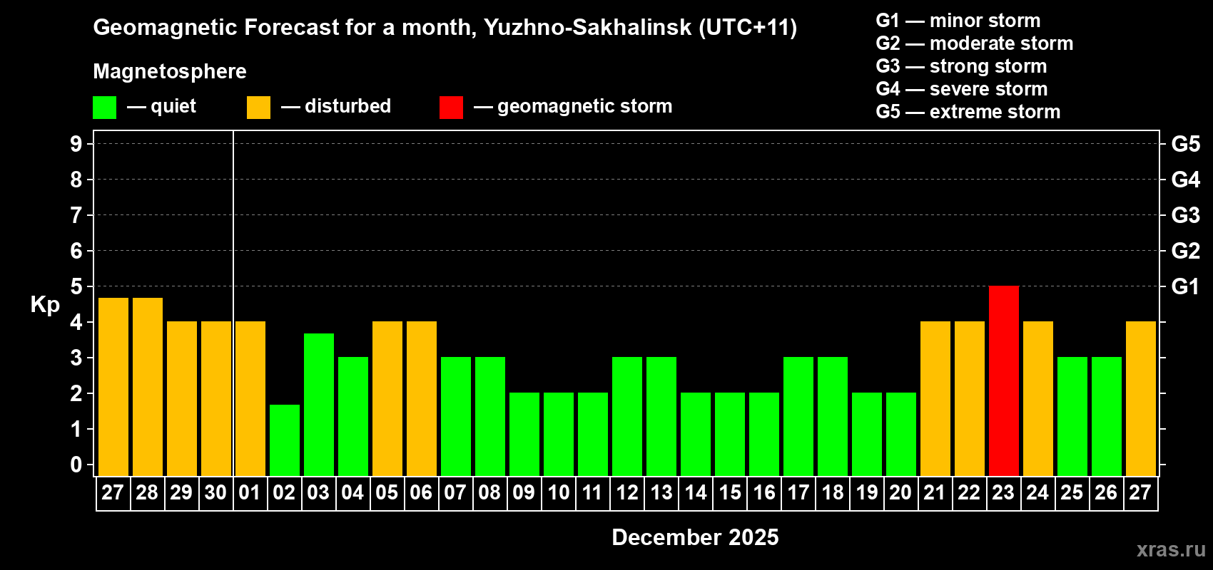 Geomagnetic storm forecast in Yuzhno-Sakhalinsk for Nov 27, 2025