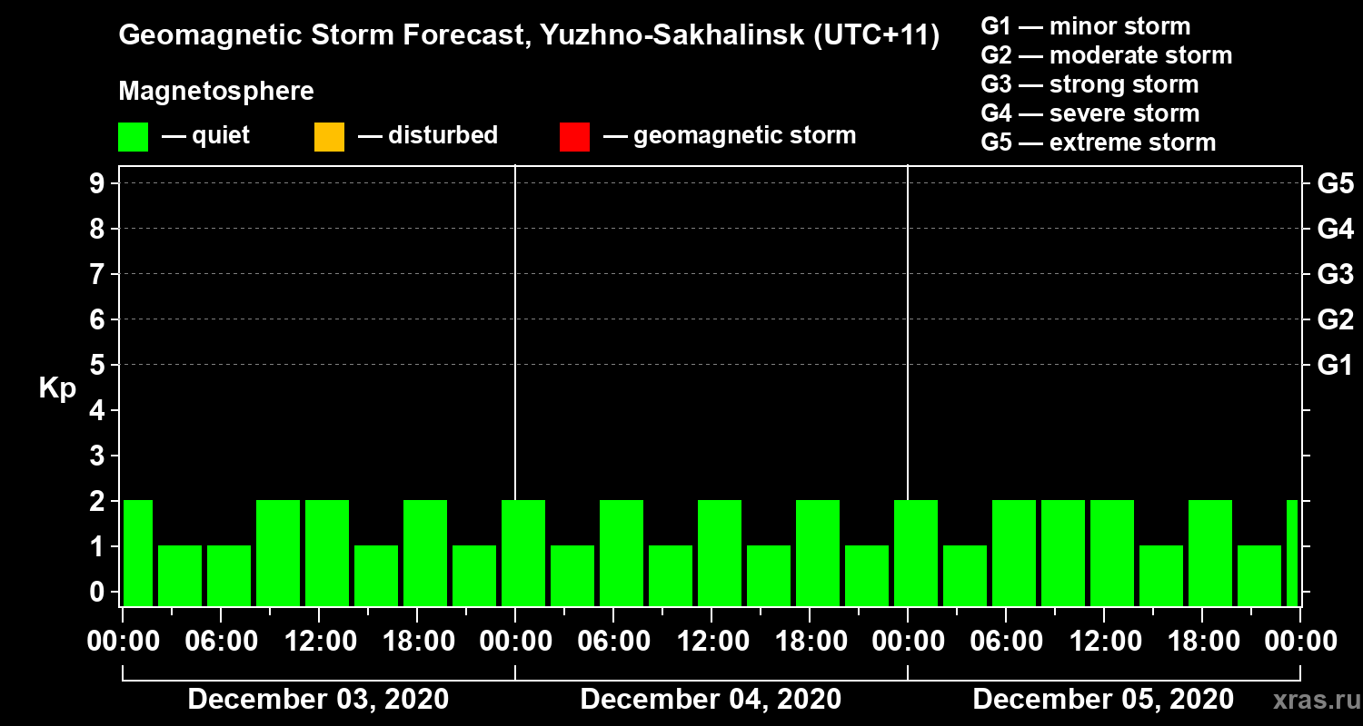 Geomagnetic storm forecast in Yuzhno-Sakhalinsk for Dec 03, 2020