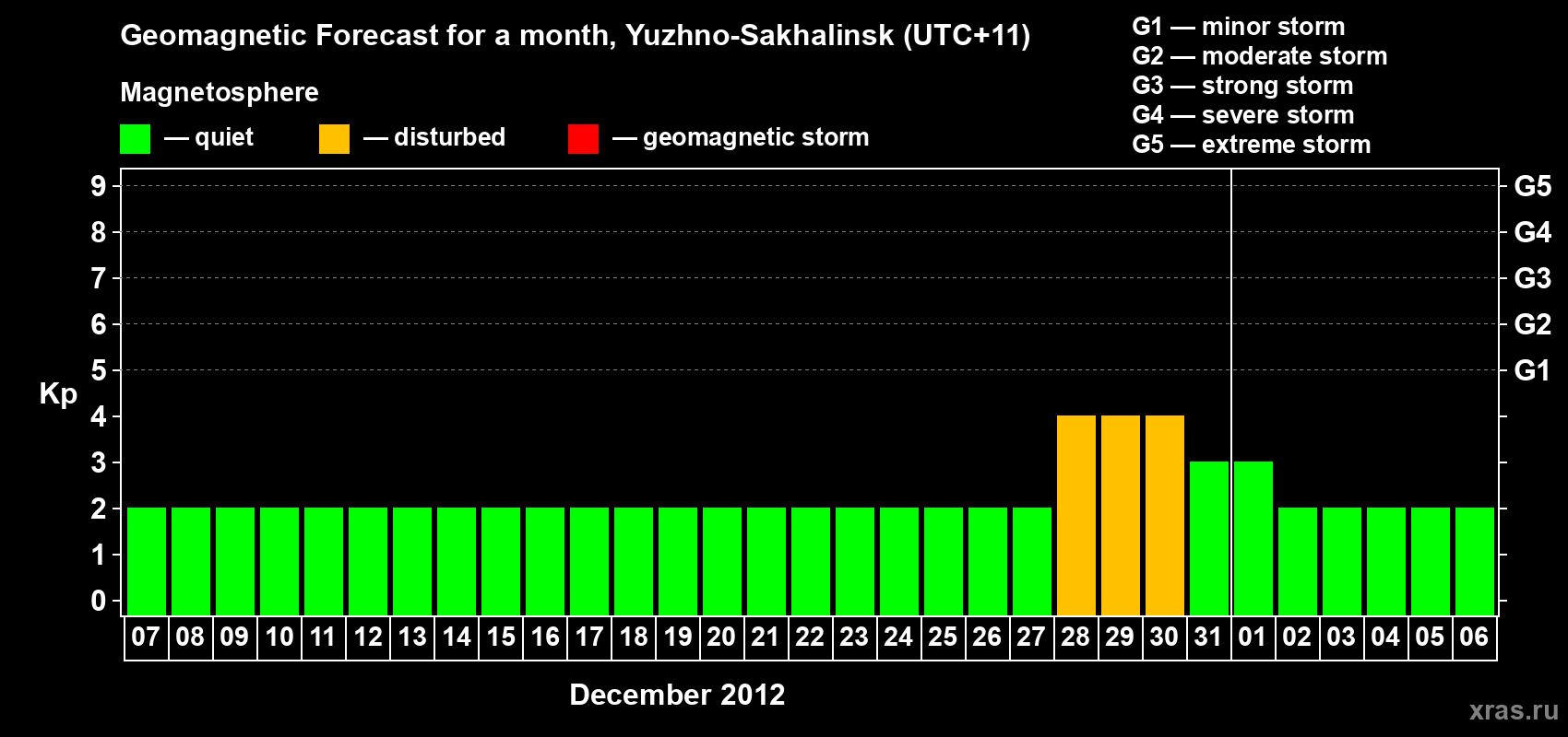 Geomagnetic storm forecast in Yuzhno-Sakhalinsk for Dec 07, 2011