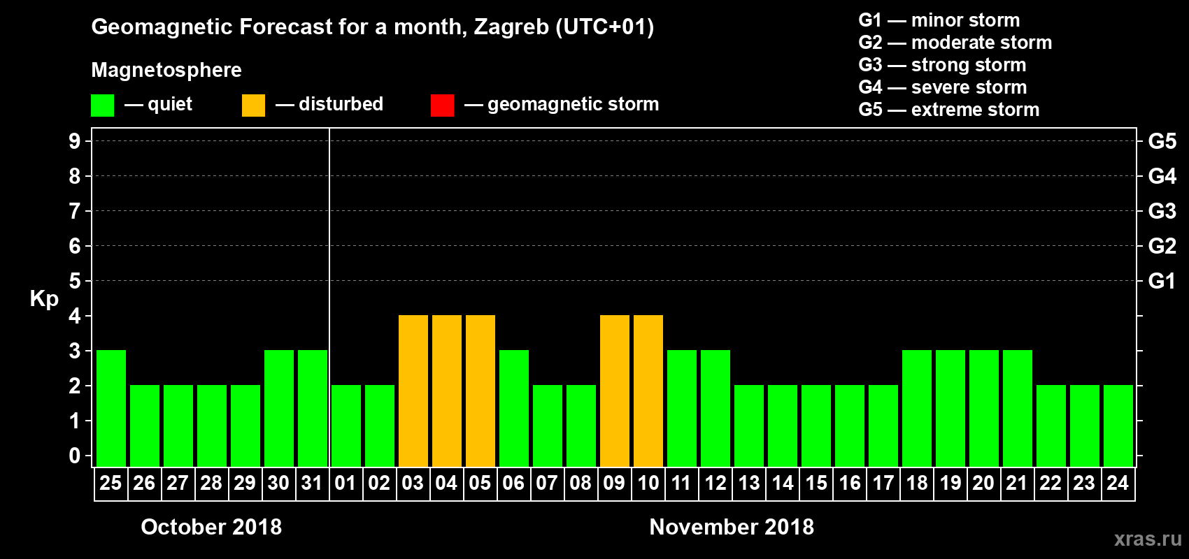Geomagnetic activity forecast in Zagreb — Oct 25, 2018