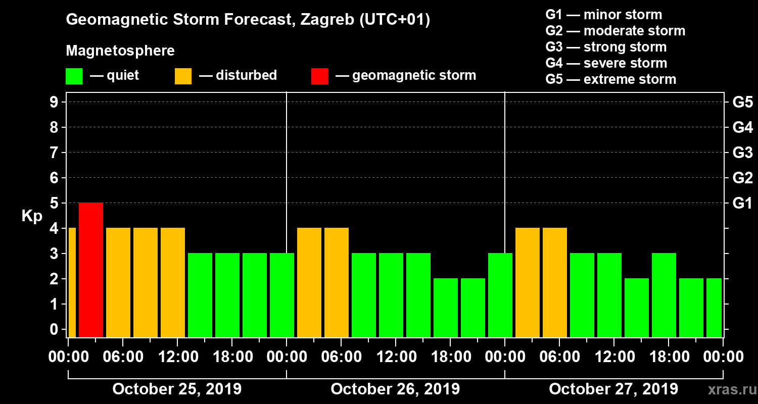 Geomagnetic activity forecast in Zagreb — Oct 25, 2019
