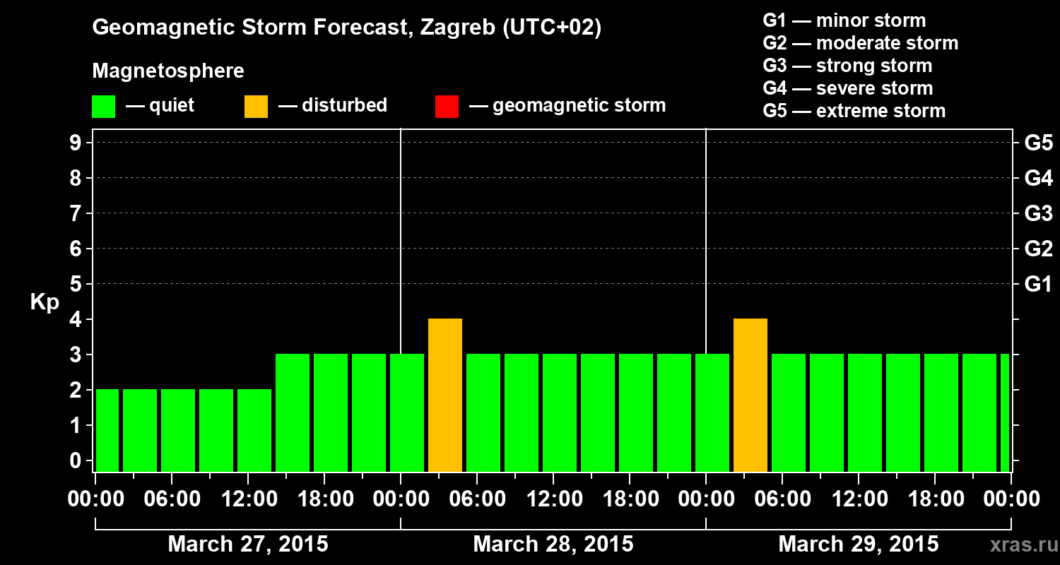 Geomagnetic storm forecast in Zagreb for Mar 27, 2015