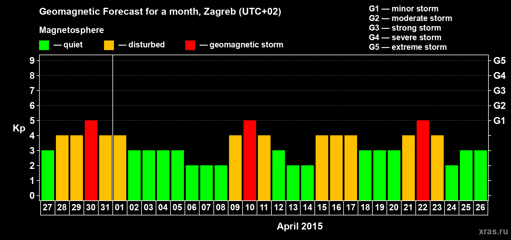 Geomagnetic activity forecast in Zagreb — Mar 27, 2015