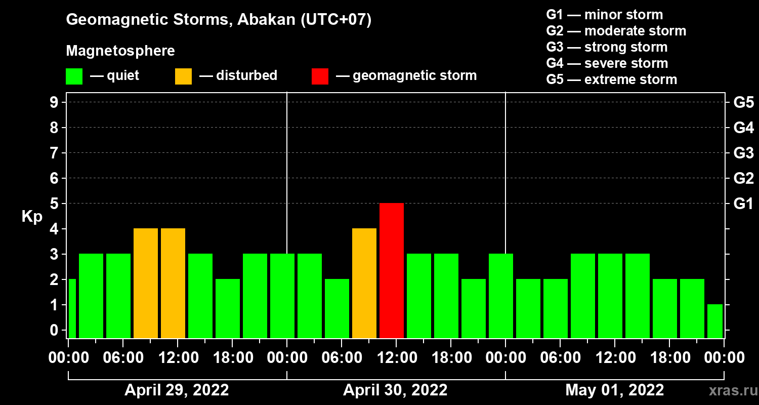 Changes in the geomagnetic index Kp from April 29 to May 1, 2022 for mid latitudes