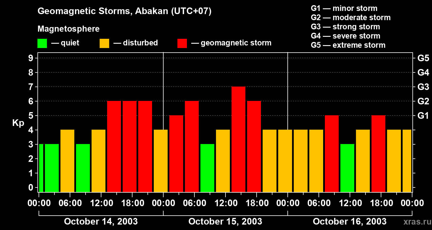 Geomagnetic storms in Abakan — Oct 16, 2003
