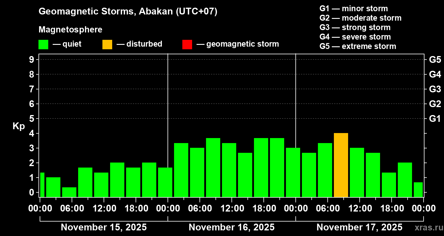 Geomagnetic storms in Abakan — Nov 17, 2025