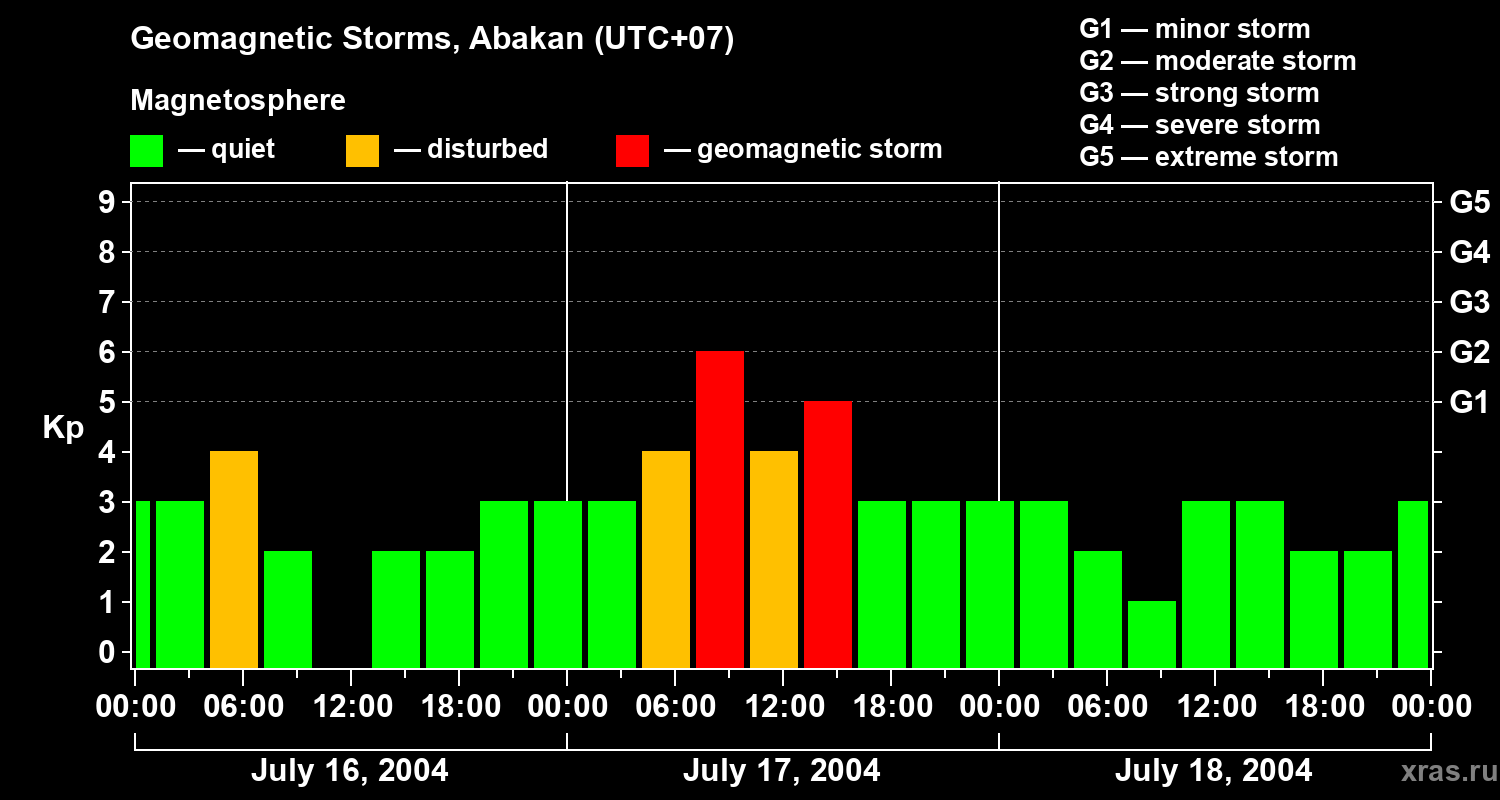 Geomagnetic storms in Abakan on Jul 18, 2004