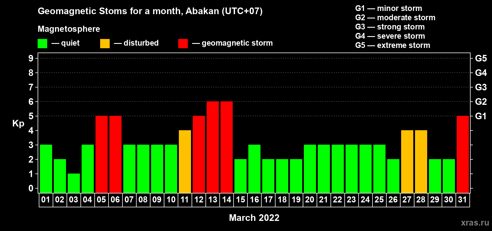 Geomagnetic storms in Abakan — Mar 31, 2022