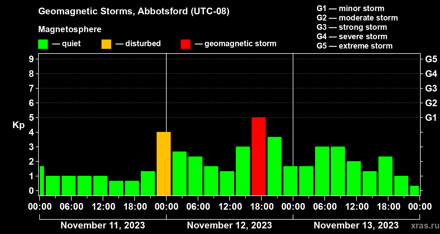 Geomagnetic storms in Abbotsford — Nov 13, 2023