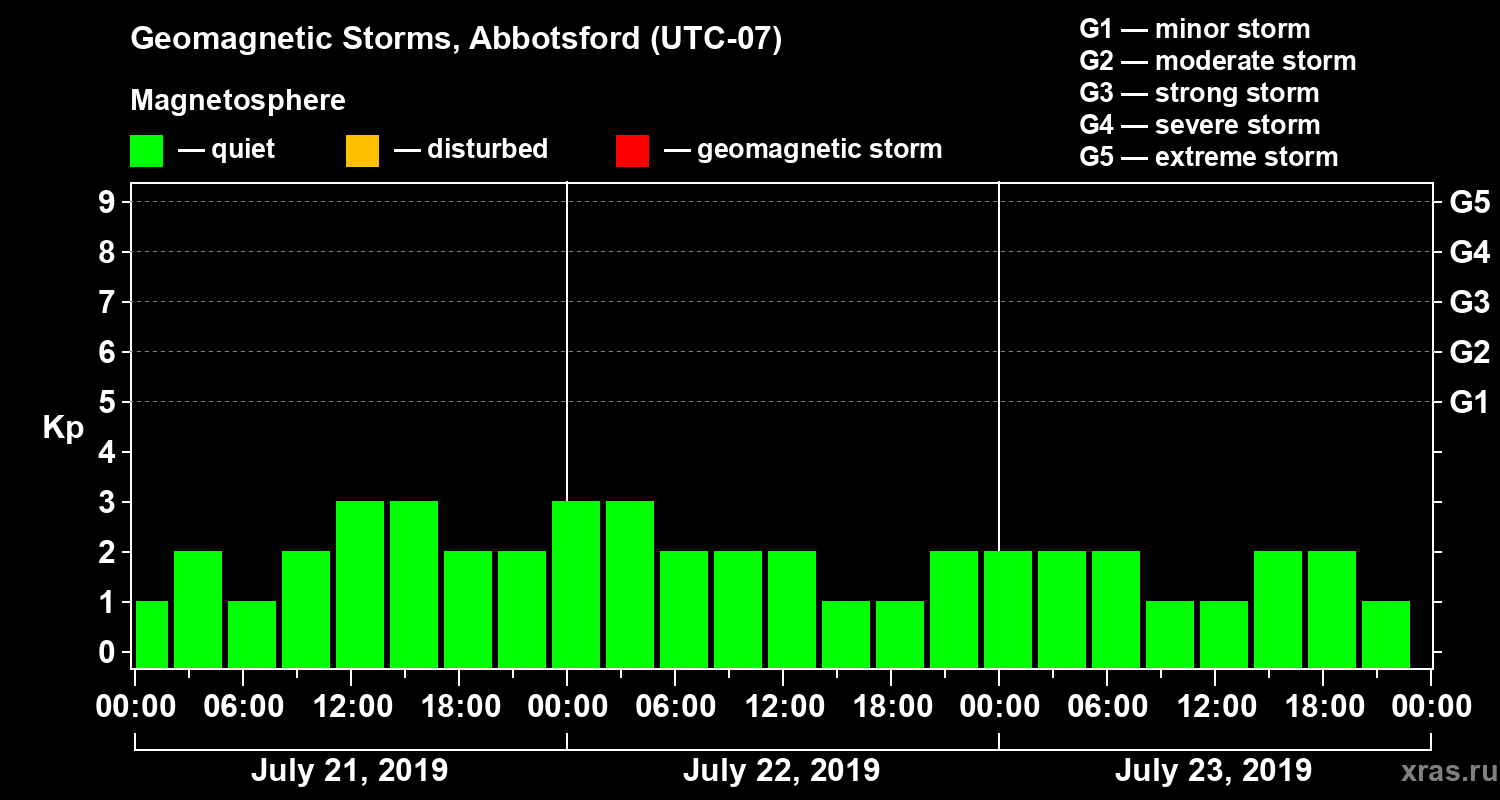 Geomagnetic storms in Abbotsford on Jul 23, 2019
