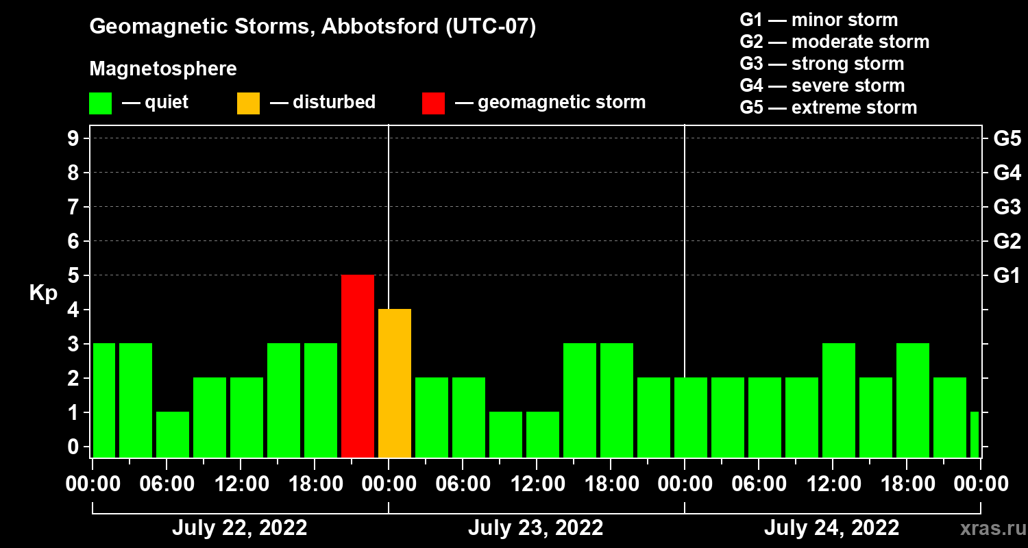 Geomagnetic storms in Abbotsford — Jul 24, 2022