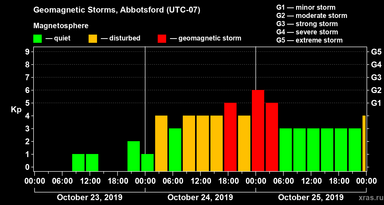 Geomagnetic storms in Abbotsford — Oct 25, 2019