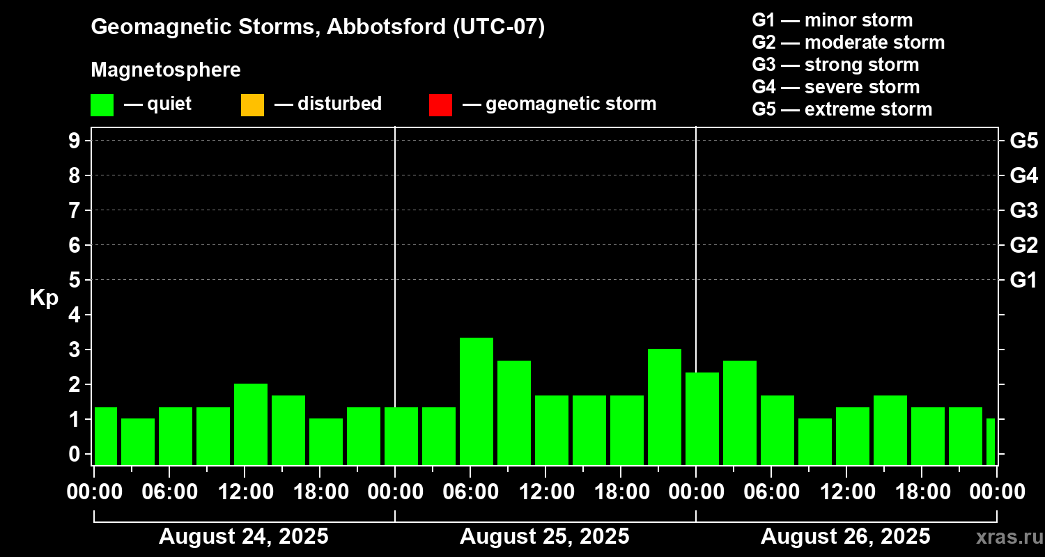 Geomagnetic storms in Abbotsford — Aug 26, 2025