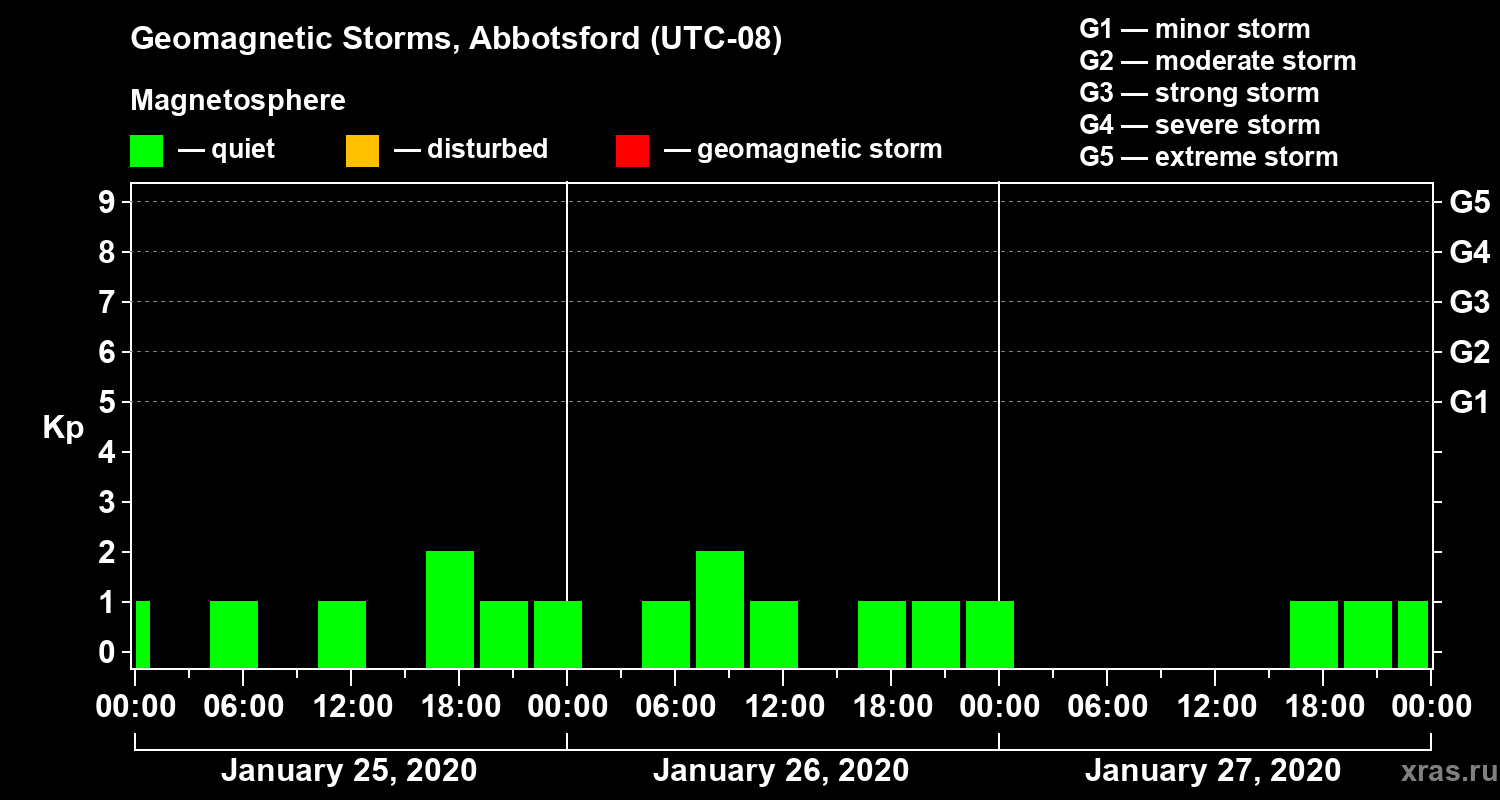 Geomagnetic storms in Abbotsford on Jan 27, 2020