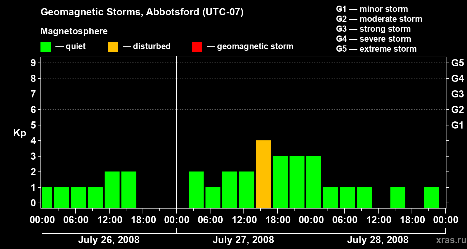 Geomagnetic storms in Abbotsford — Jul 28, 2008
