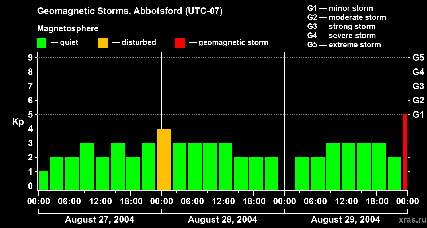 Geomagnetic storms in Abbotsford on Aug 29, 2004