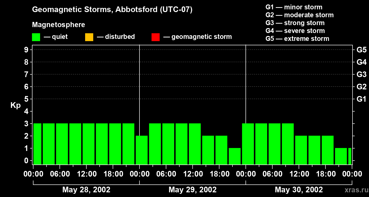 Geomagnetic storms in Abbotsford on May 30, 2002