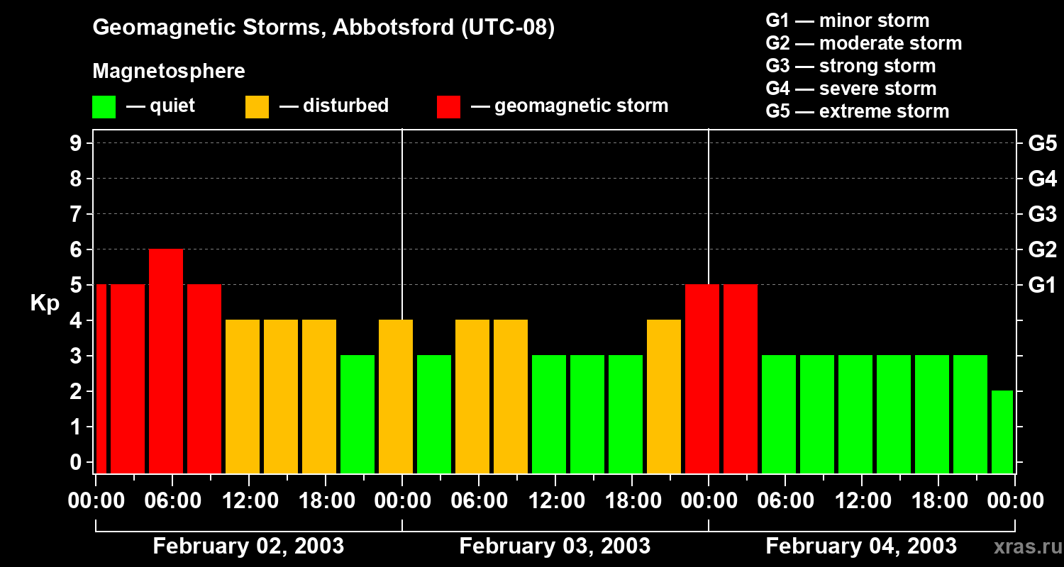 Geomagnetic storms in Abbotsford — Feb 04, 2003