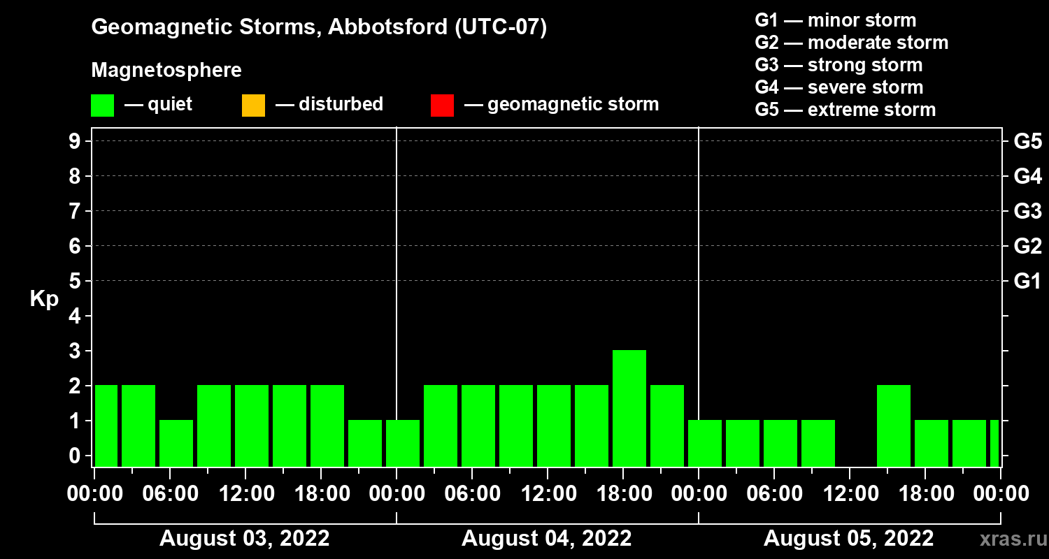 Geomagnetic storms in Abbotsford on Aug 05, 2022