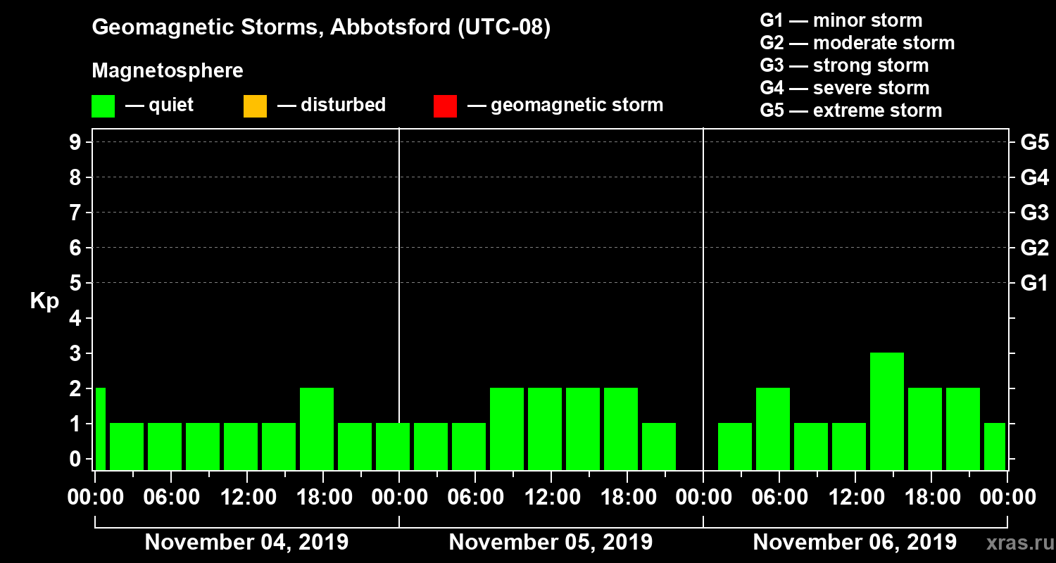 Geomagnetic storms in Abbotsford in November 2019