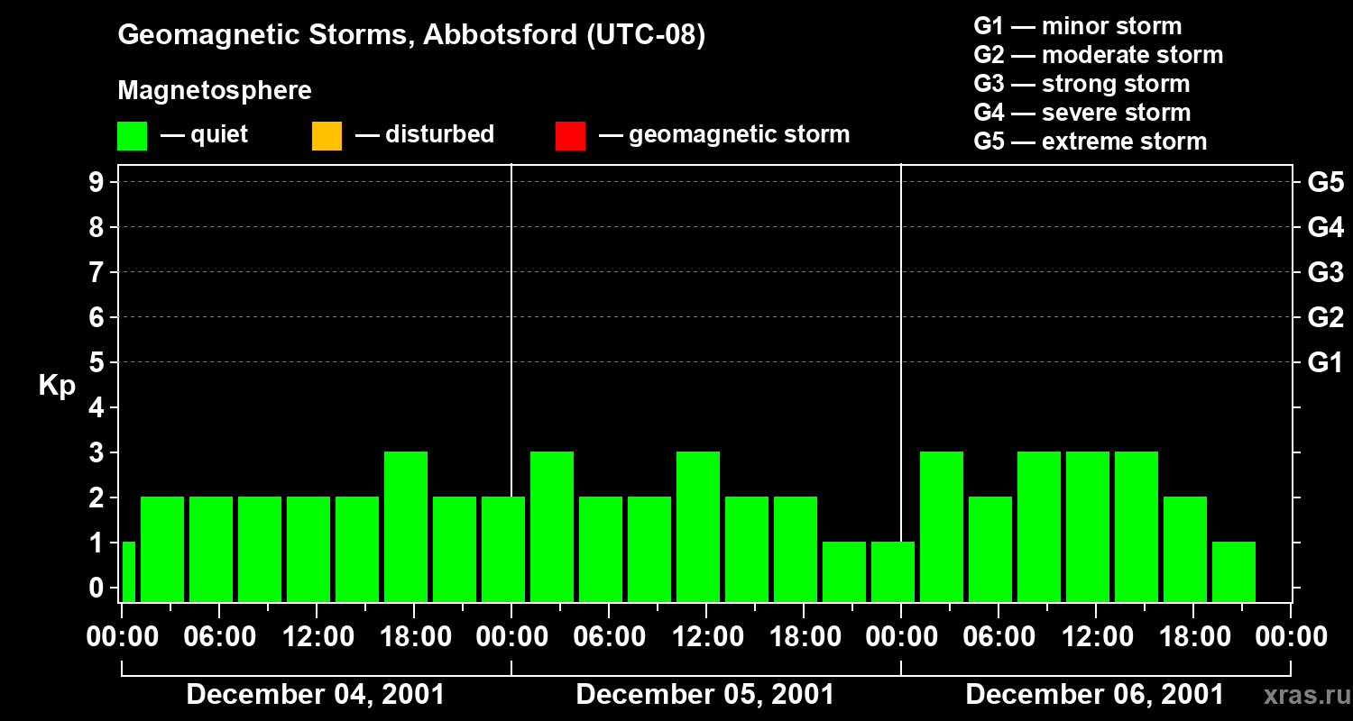 Geomagnetic storms in Abbotsford in December 2001