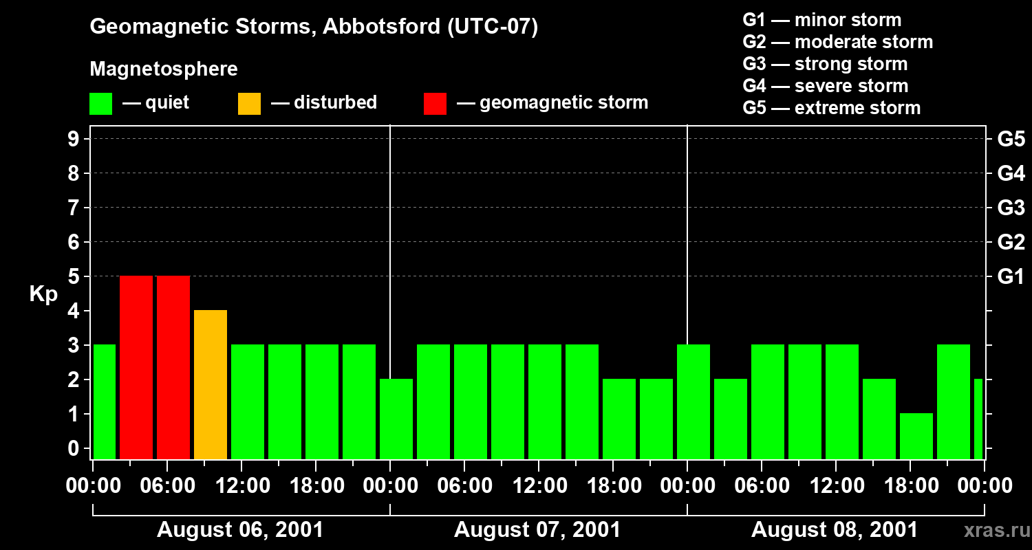 Geomagnetic storms in Abbotsford — Aug 08, 2001
