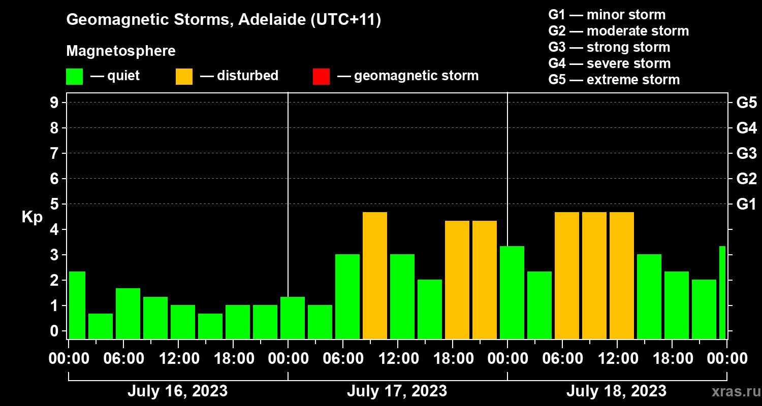 Geomagnetic storms in Adelaide on Jul 18, 2023