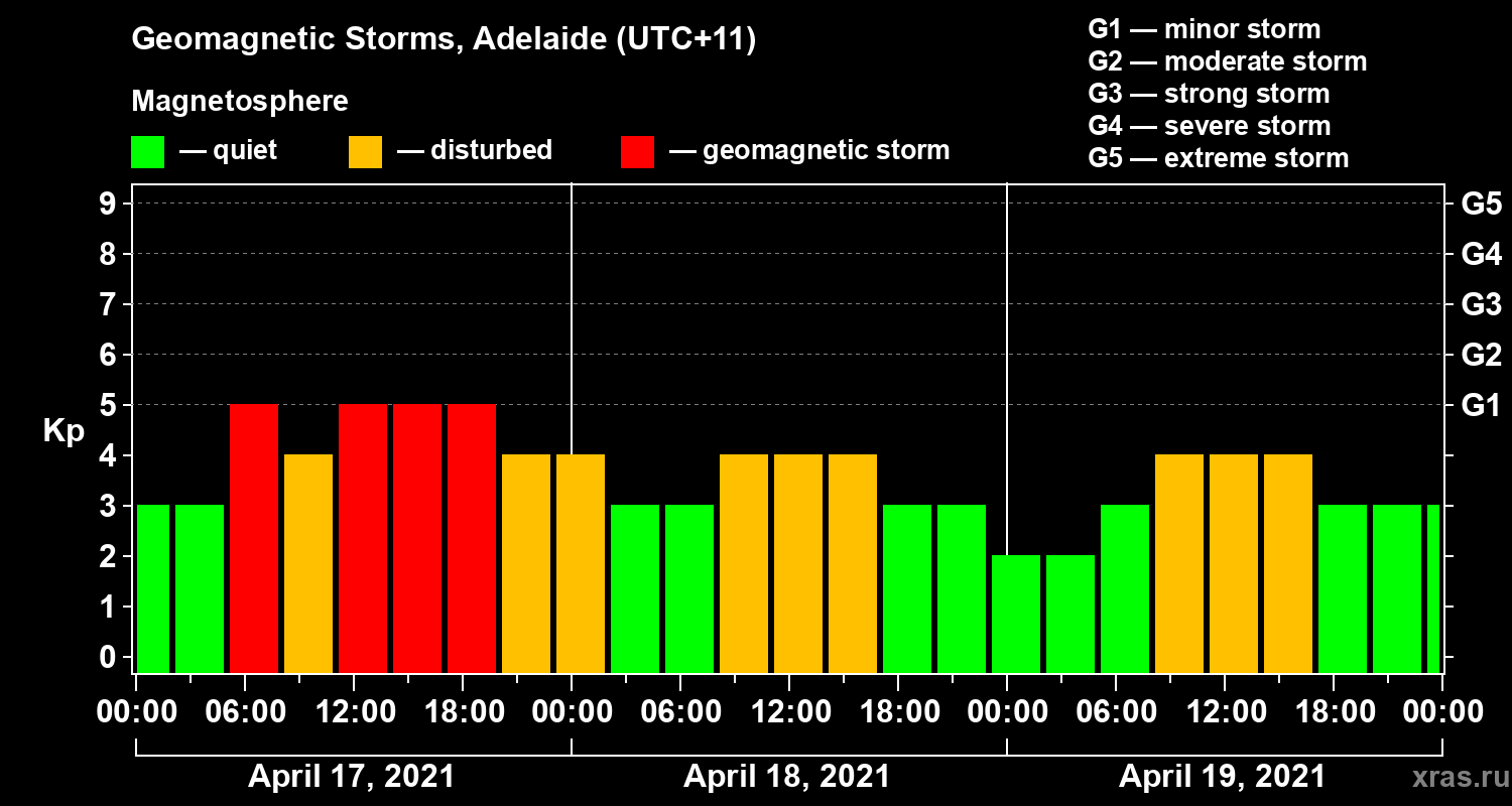 Geomagnetic storms in Adelaide in April 2021