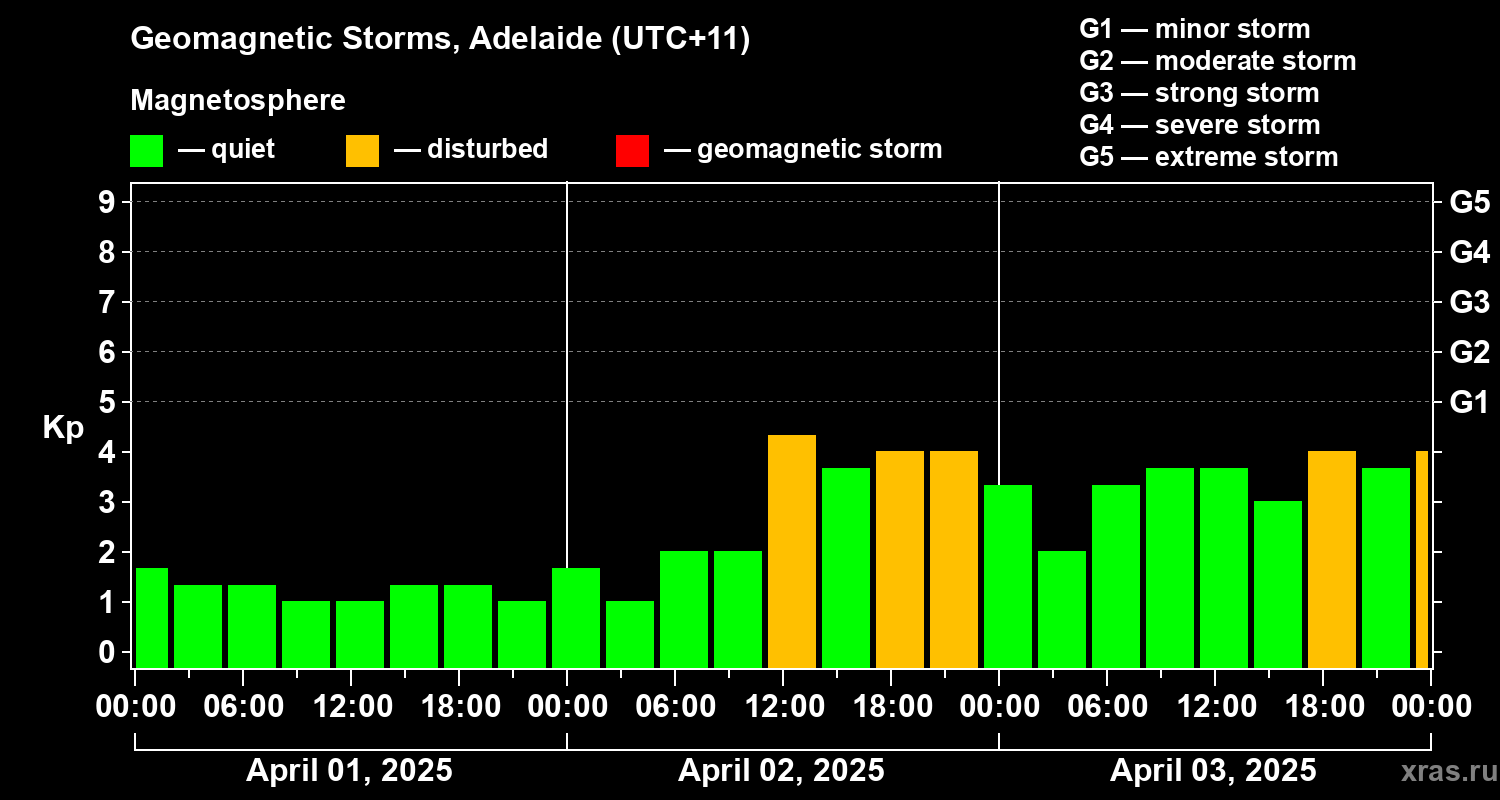 Geomagnetic storms in Adelaide — Apr 03, 2025