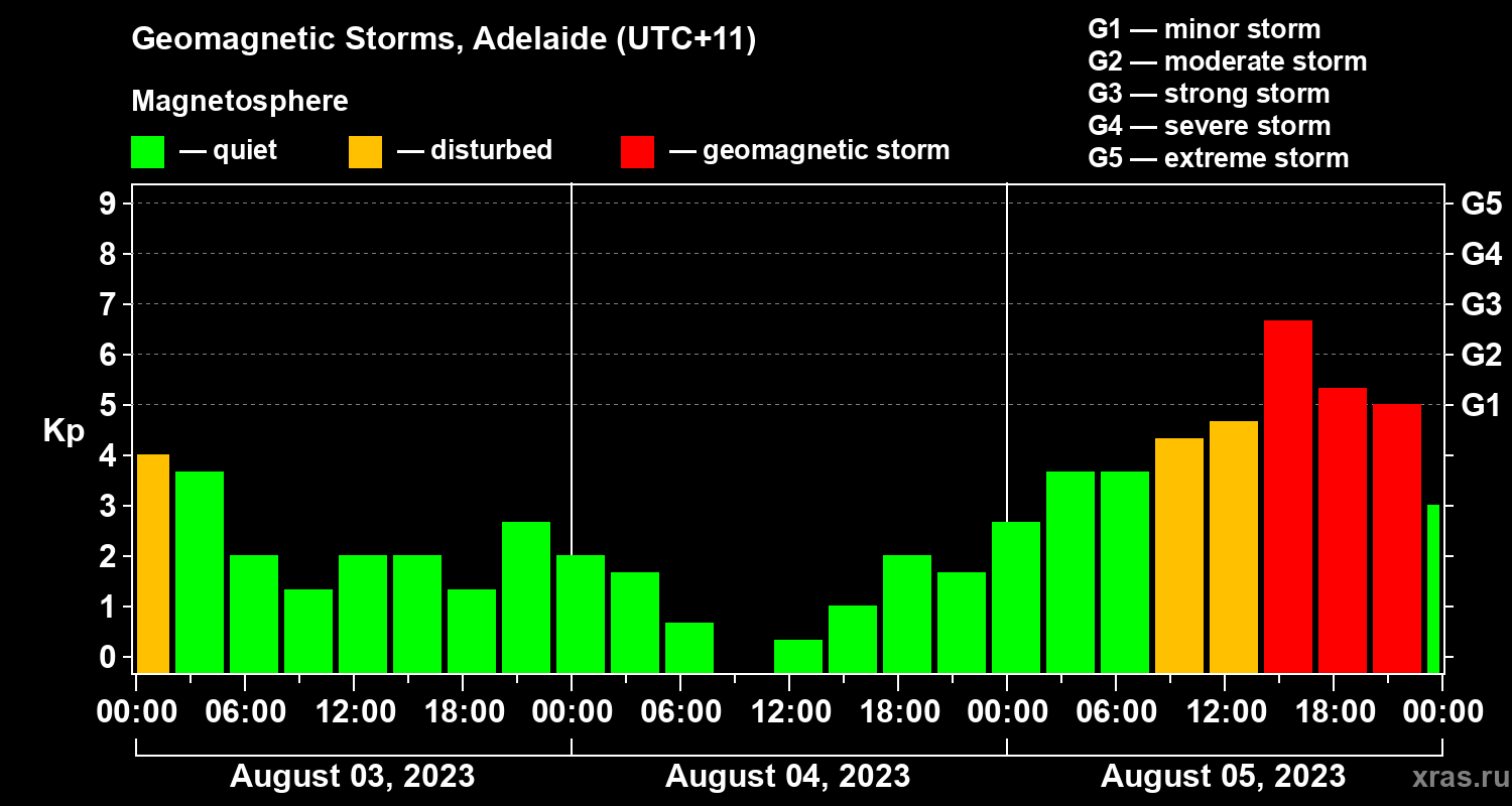 Geomagnetic storms in Adelaide — Aug 05, 2023