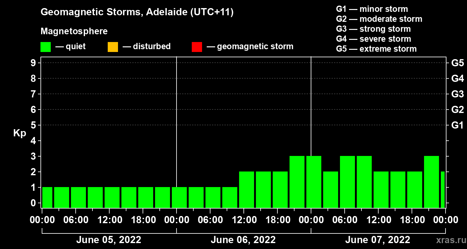 Geomagnetic storms in Adelaide on Jun 07, 2022