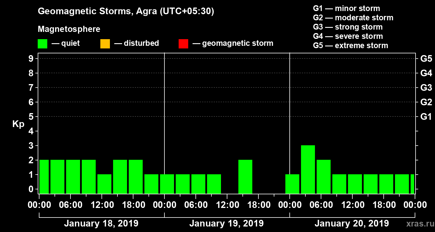 Changes in the geomagnetic index Kp from January 18 to 20, 2019 for mid latitudes