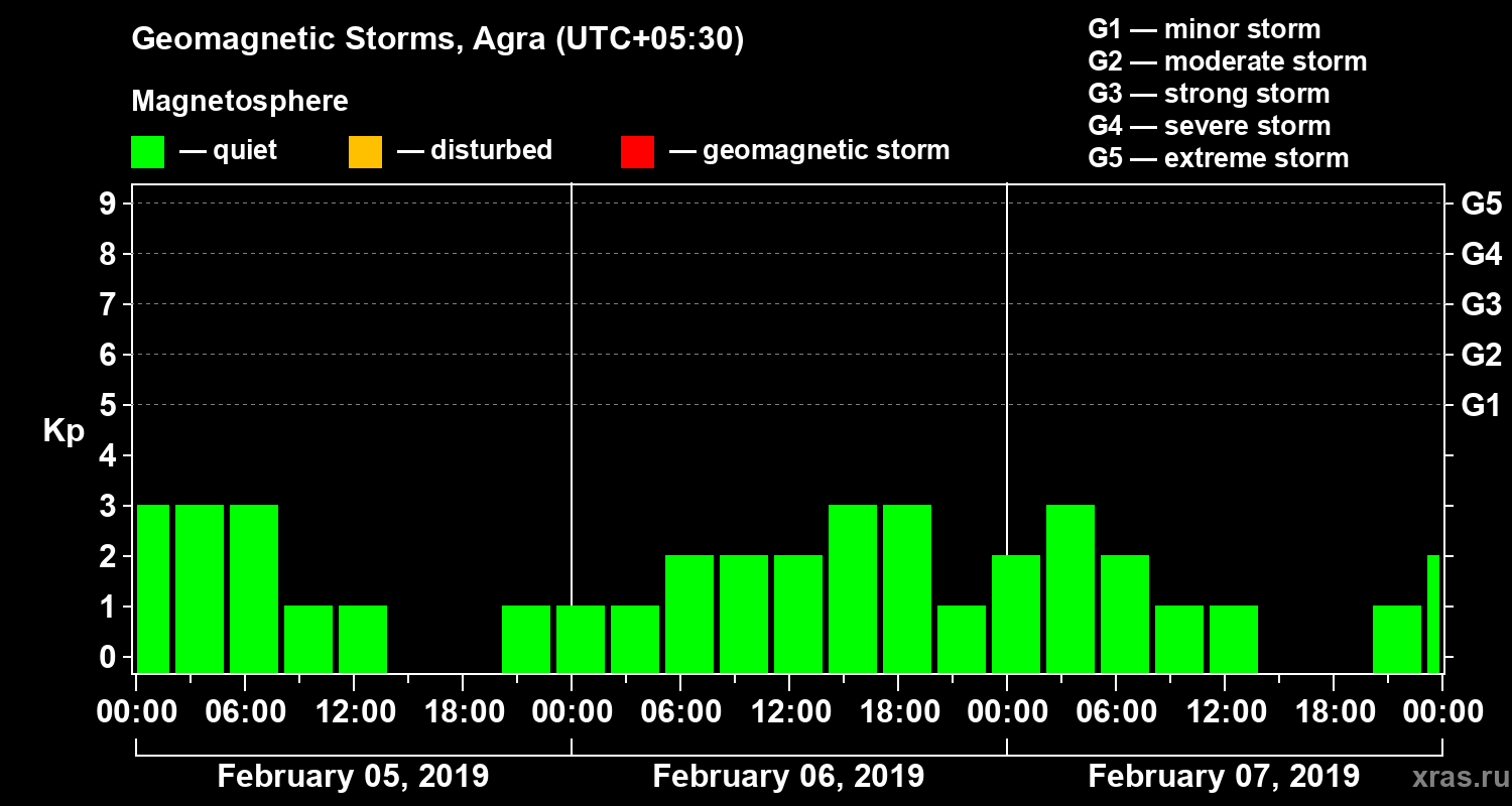 Geomagnetic storms in Agra — Feb 07, 2019