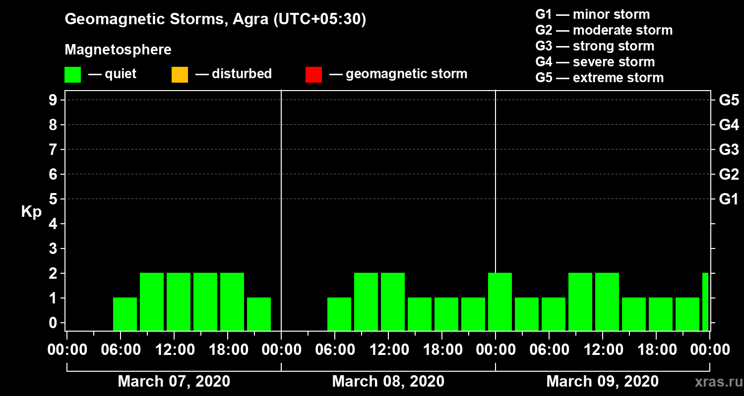 Geomagnetic storms in Agra — Mar 09, 2020