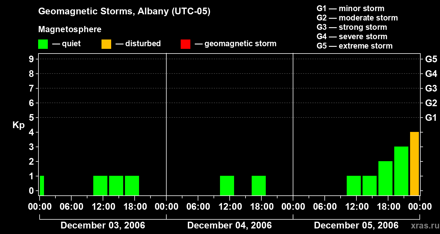 Changes in the geomagnetic index Kp from December 3 to 5, 2006 for mid latitudes