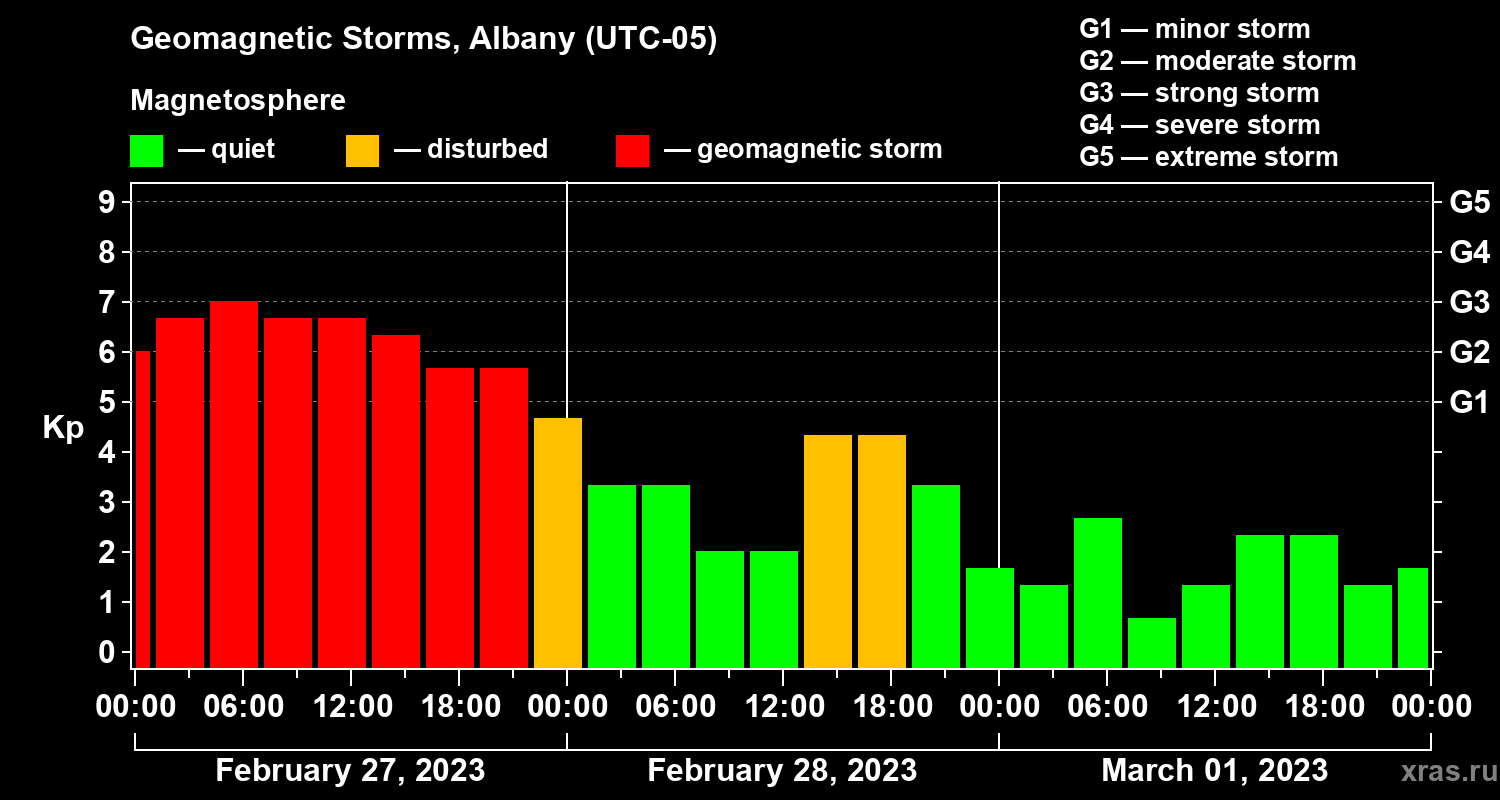Geomagnetic storms in Albany on Mar 01, 2023